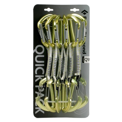 Nothing gets your climbing rack off to a good start like a half-dozen quickdraws from the Black Diamond QuickWire Quickpack. These Black Diamond quickdraws combine a versatile Quicksilver straight-gate carabiner with an easy-to-clip wire gate HotWire carabiner to take on anything from trad to sport. The QuickWire Quickdraws also use an ultralight Dynex dogbone that includes a rubber straightjacket sleeve on the rope end to hold proper 'biner orientation for quick clipping.