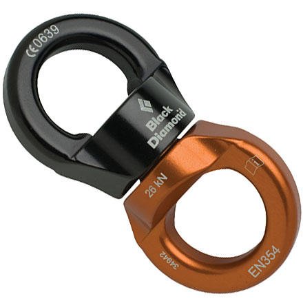 Connect the Black Diamond Rotor between your haul bag and haul line to eliminate the brutal twisting that occurs in the line when your pig spins during a free-hanging haul. This aluminum swivel uses enclosed bearings to let your overloaded bag spin freely without kinking 200 feet of hanging rope on a big wall climb. The Black Diamond Rotor also holds up to three carabiners on each end to make it easier to clip the pig to your anchor when you finish the chore .
