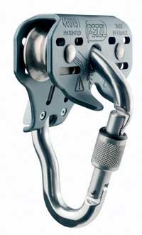 Double pulley for cable or rope tyroleans with integral VERTIGO carabiner. Sealed ball bearings for speed and to give constant efficiency independent of the weight of the person, the temperature or the humidity. Sheaves are aligned to guarantee stability in motion and to reduce friction. Breaking load 20 kN. Working load 2 kN.