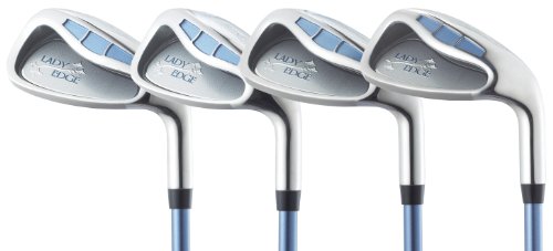 A greater starter set with enhanced game improvement technology, the Lady Edge is a step up from our Tour Edge Reaction Set offering higher quality and a lifetime warranty. The set features a high moment of inertia (MOI - the club’s ability to resist twisting), 460cc, high-lofted driver that offers exceptional forgiveness and long drives even on off-center hits. The low profile, stainless steel fairway woods have a low and deep center of gravity (CG) that helps get the ball quickly into the air even from the firmest lies. To hit more shots on the green, the set includes easy-to-hit stainless steel hybrids that features a wide sole for a low, deep CG position that will help you carry the bunkers and land it softly on the green. Oversized stainless steel irons feature undercut cavity design that moves the CG back for higher shots and more forgiveness on miss-hits. Since the putter is the most used club in the bag, the Lady Edge set features a high MOI, mallet-style putter with an easy-to-use alignment to help you make more putts.